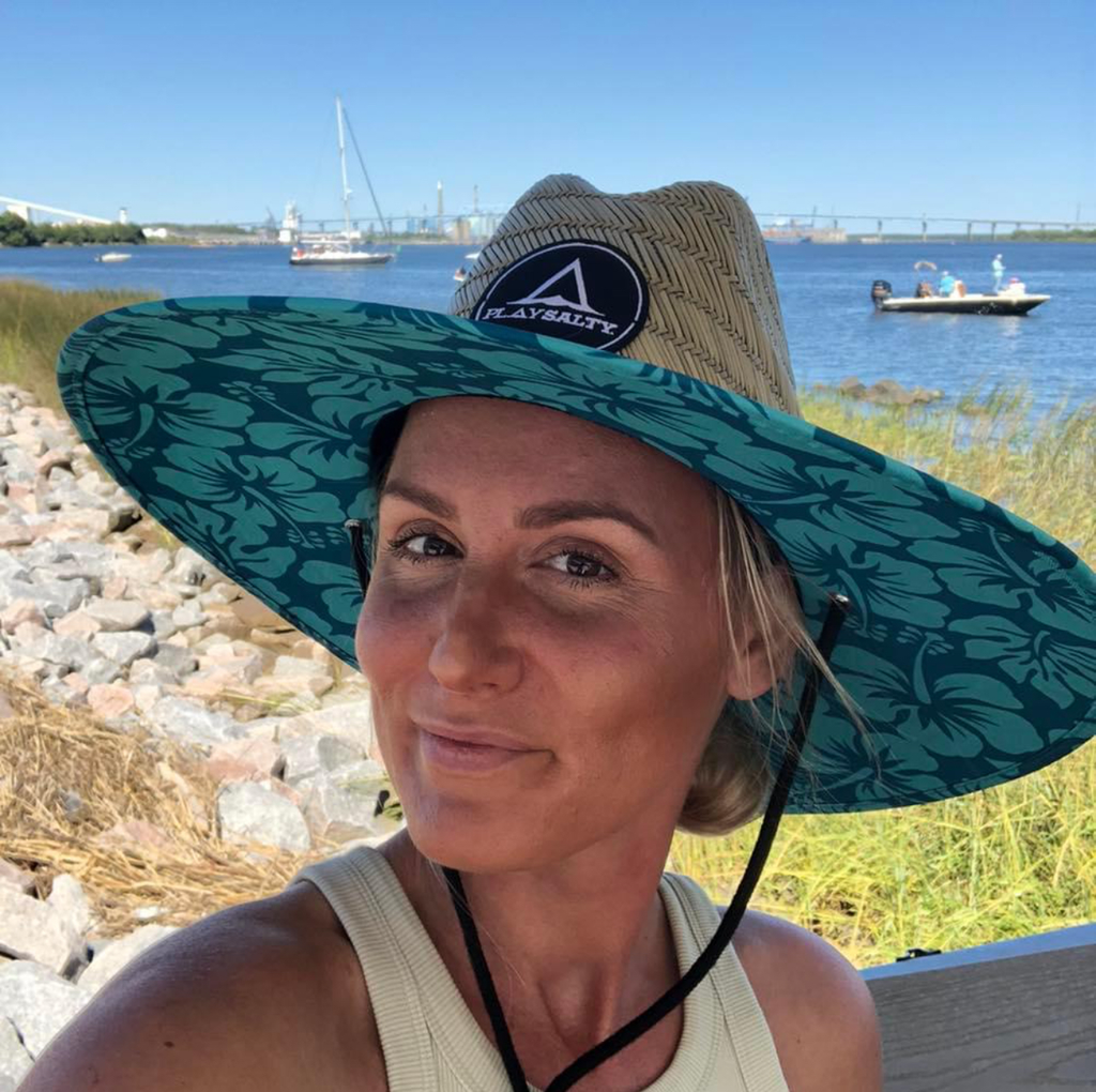 TEAL HIBISCUS Lifeguard Straw Hat