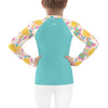 Protect the little ones from the elements with this colorful kids rash guard. Its sun-protective fabric and long body and sleeves make it perfect for running around on the beach, or just being active indoors.