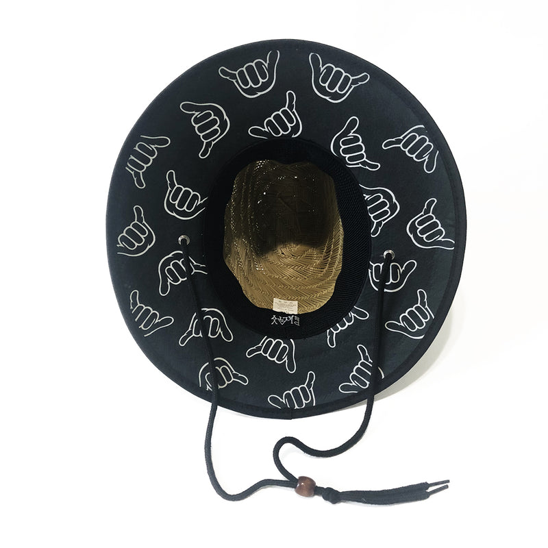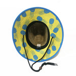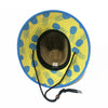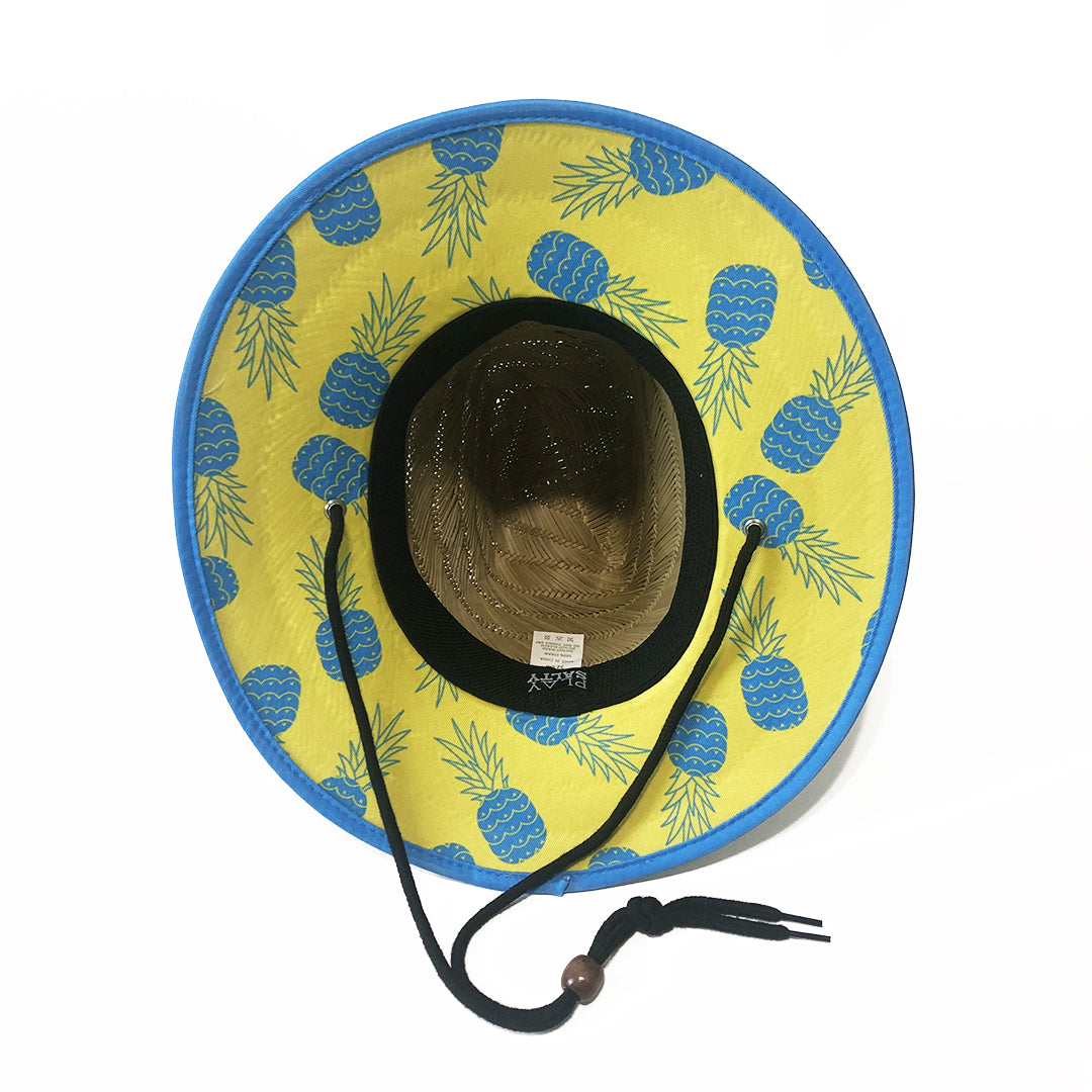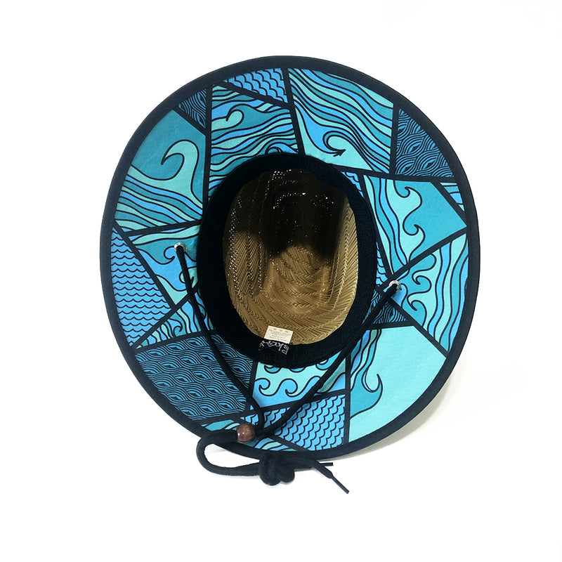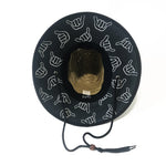 Protect your kiddo's from the sun in our groms straw lifeguard hats. A life-saver hat for all-day beach days, keeping them cool and shaded. Made of straw, this wide brim features a woven Play Salty patch at the front, signature ∆PS designs printed on fabric at the underside, and adjustable toggle draw cord.