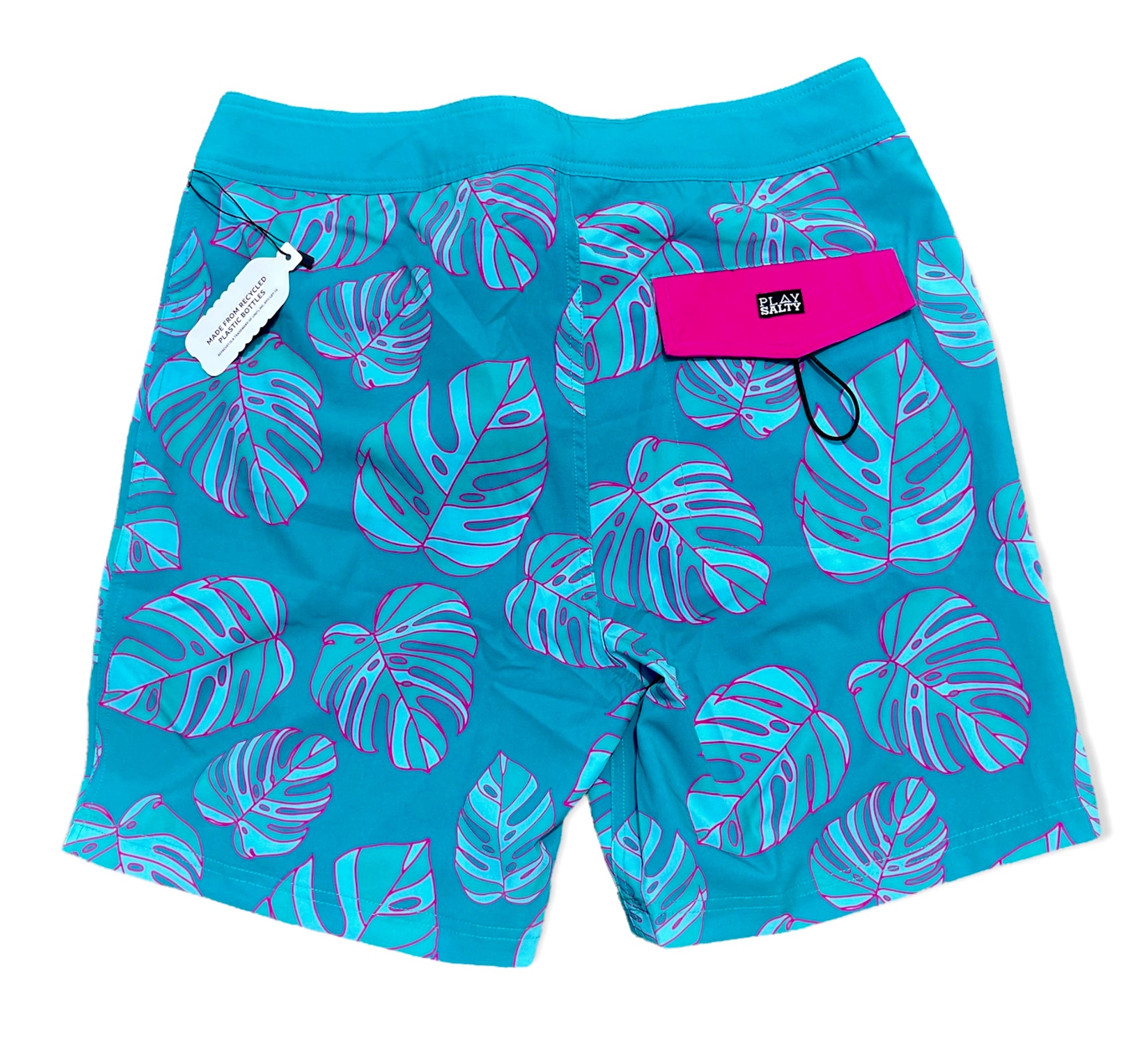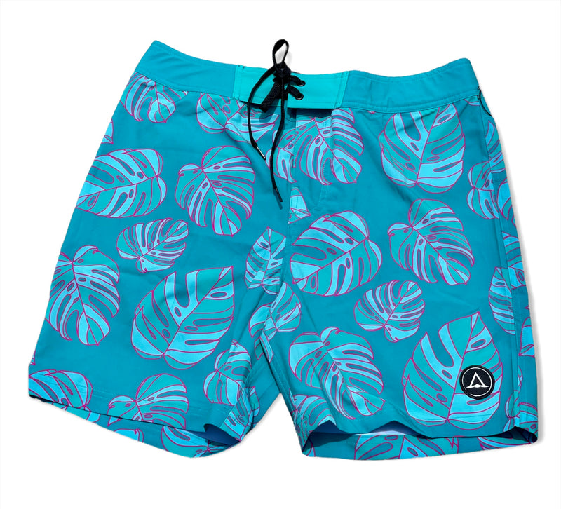 SEA GREEN MONSTERA LEAF Repreve®️ Recycled Performance Boardshorts