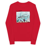 The Youth Long Sleeve Shirt is made of Airlume combed and ringspun cotton, which is known for its softness and durability. The shirt has a regular fit, classic crew neck, and ribbed cuff.